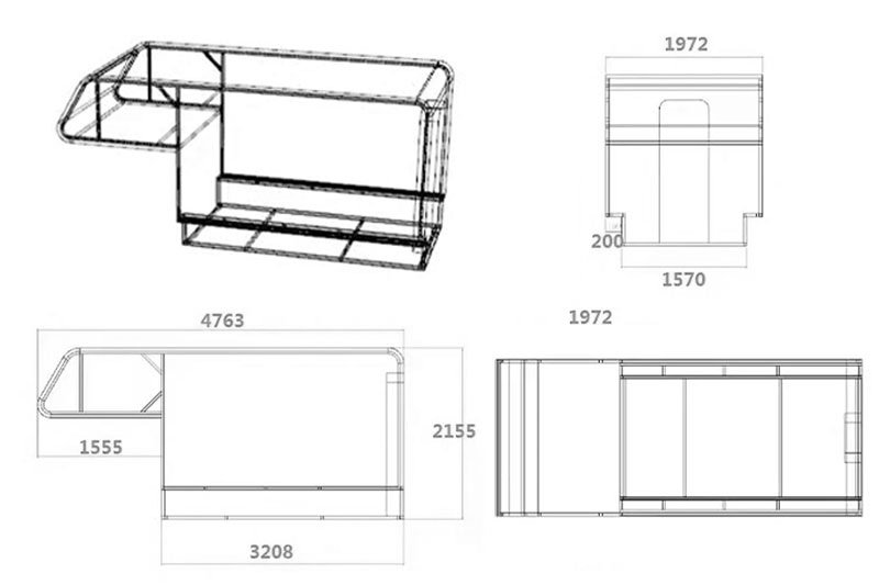 • Внешний размер: 4763x1972x1972 мм или по индивидуальному заказу.