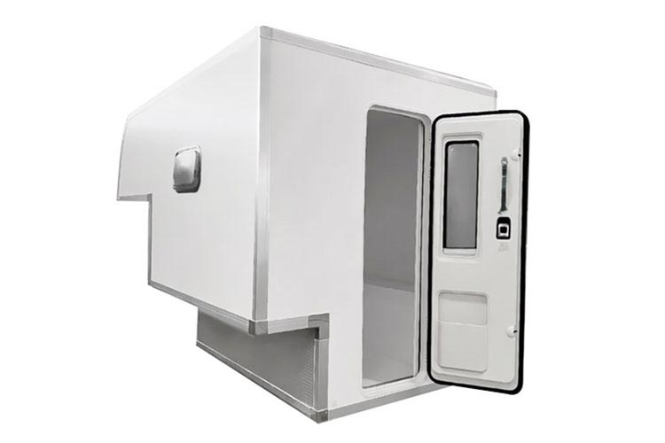 Грузовой кемпер изготовлен из высококачественных сэндвич-панелей FRP (армированный стекловолокном) сэндвич-панелей, которые легкие и прочные, удобны в установке и транспортировке. Интегрированные материалы из фанеры, стали, алюминия, стекловолокна и т.д. встроены в панель пола.