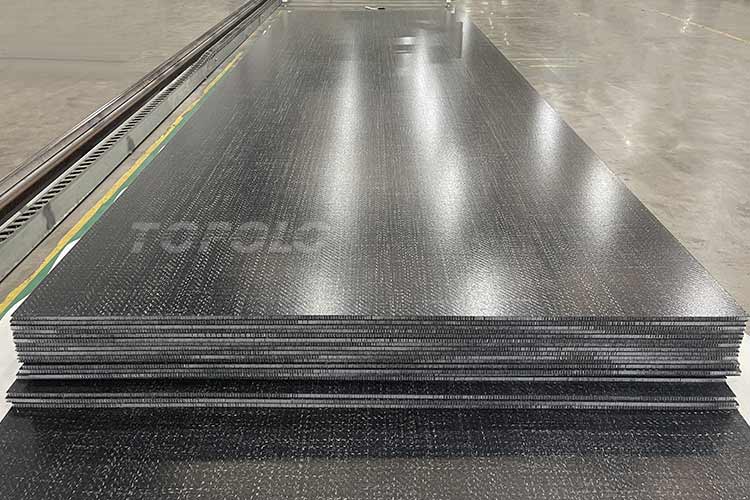 Этот материал представляет собой высокопроизводительный композит, изготовленный из полипропилена (PP) и ткани стекловолокна. Поверхность покрыта полипропиленовой пленкой, которая защищает внутренний слой стекловолокна от воздействия и износа, повышая устойчивость к погодным условиям и продлевая срок службы.