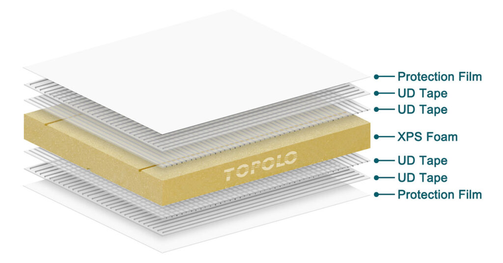 В новой изоляционной панели из стекловолокна XPS с сердцевиной из пенопласта используется CFRT (термопластик, армированный непрерывным волокном) в качестве поверхности. CFRT обладает лучшим теплоизоляционным эффектом, чем металлические материалы, и лучшей ударопрочностью, чем термореактивные листы из стекловолокна.