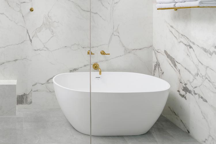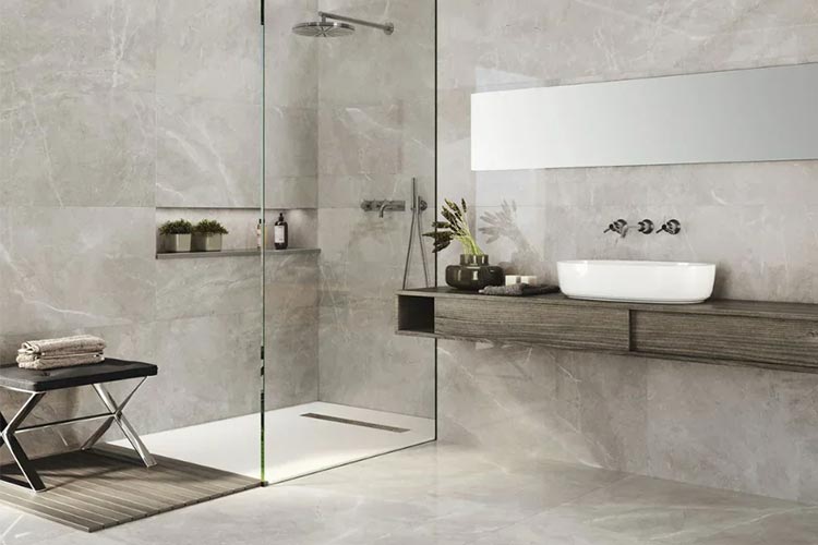 Фарфоровый камень — один из самых популярных материалов высокого класса в современном дизайне ванных комнат, сочетающий эстетику, долговечность и практичность. Изготовленный из натуральных минералов и обжигаемый под высокими температурами и давлением, он обладает ультранизкой водопоглощённостью, отличной износостойкостью и стойкостью к скольжению, что делает его идеальным для длительного использования во влажных условиях. Он стал одним из самых востребованных материалов в современной архитектуре и интерьерном дизайне. В модульном строительстве фарфоровая плитка не только демонстрирует высококлассную эстетику и естественную текстуру, но и повышает комфорт и долговечность пространства.