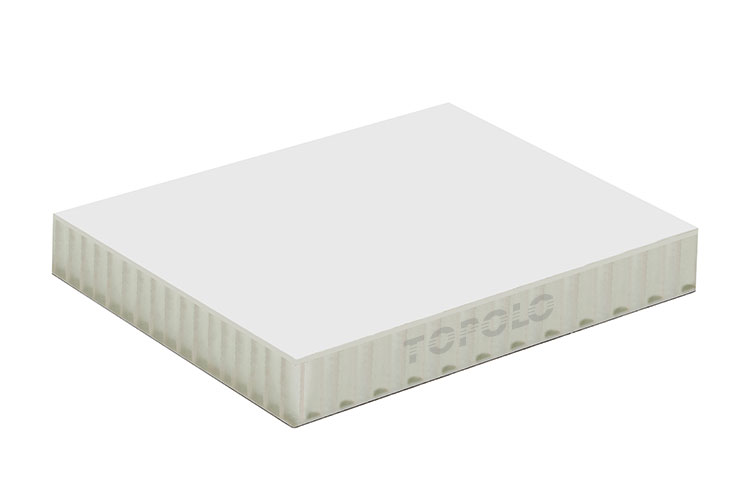 Полипропиленовые сотовые термопластичные сэндвич-панели представляют собой композитные материалы, отличающиеся от традиционных клеевых сотовых сэндвич-панелей. Они изготовлены из ламинированных листов CFRT (термопласт, армированный непрерывным волокном) и сотовых заполнителей из полипропилена (PP) путем термической обработки композитов. Поскольку термопластичная смола проникает друг в друга в процессе нагрева, материал поверхности и материал сердцевины сот более тесно компонованы и их трудно разделить после охлаждения. Такая прочность сцепления не может быть достигнута только с помощью клея.